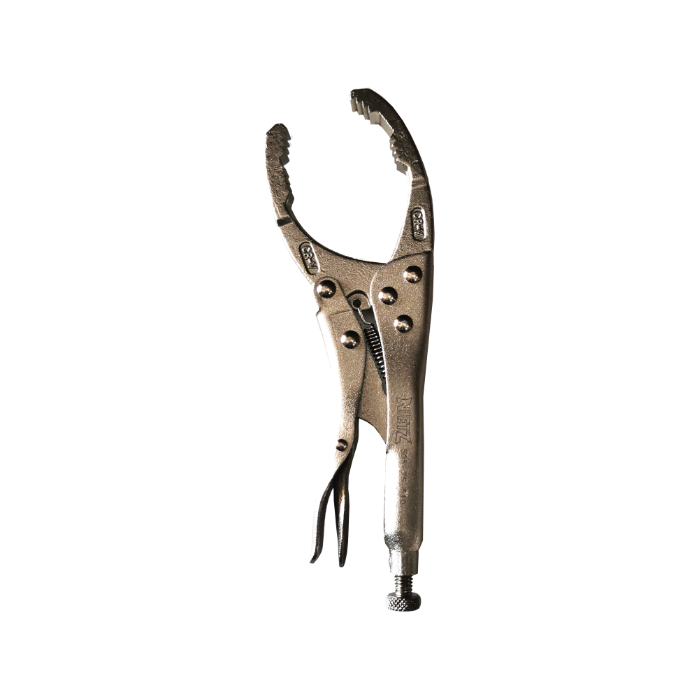 Jaws: Features large, curved jaws with aggressive, self-locking teeth to ensure a strong grip on cylindrical objects like oil filters.