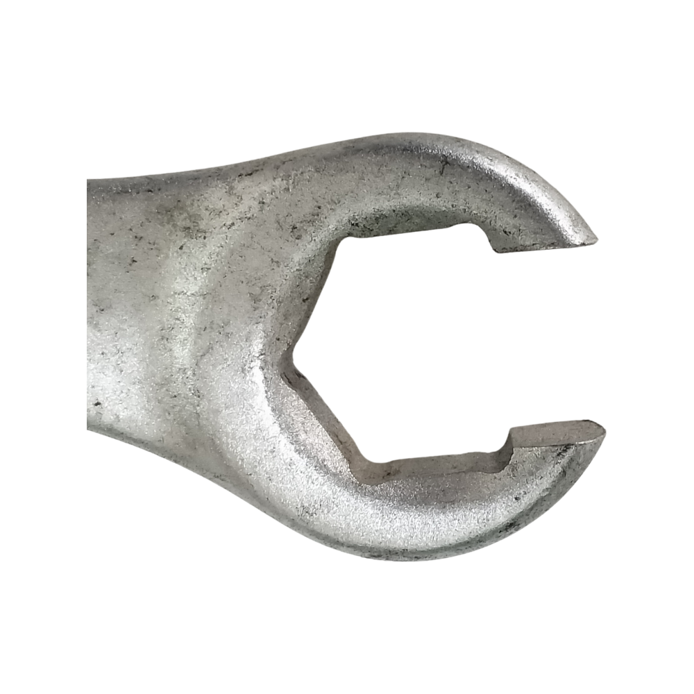 Design: The wrench head features a nearly closed, six-point opening. This design provides greater contact with the nut compared to a standard open-end wrench, which helps prevent rounding of soft fasteners.