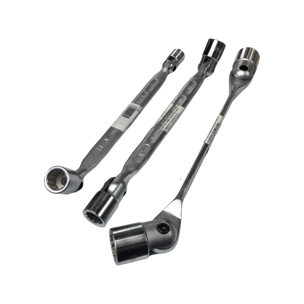 Dual Flexible Heads: Both ends of the wrench feature a 180-degree pivoting socket head for versatile positioning.
